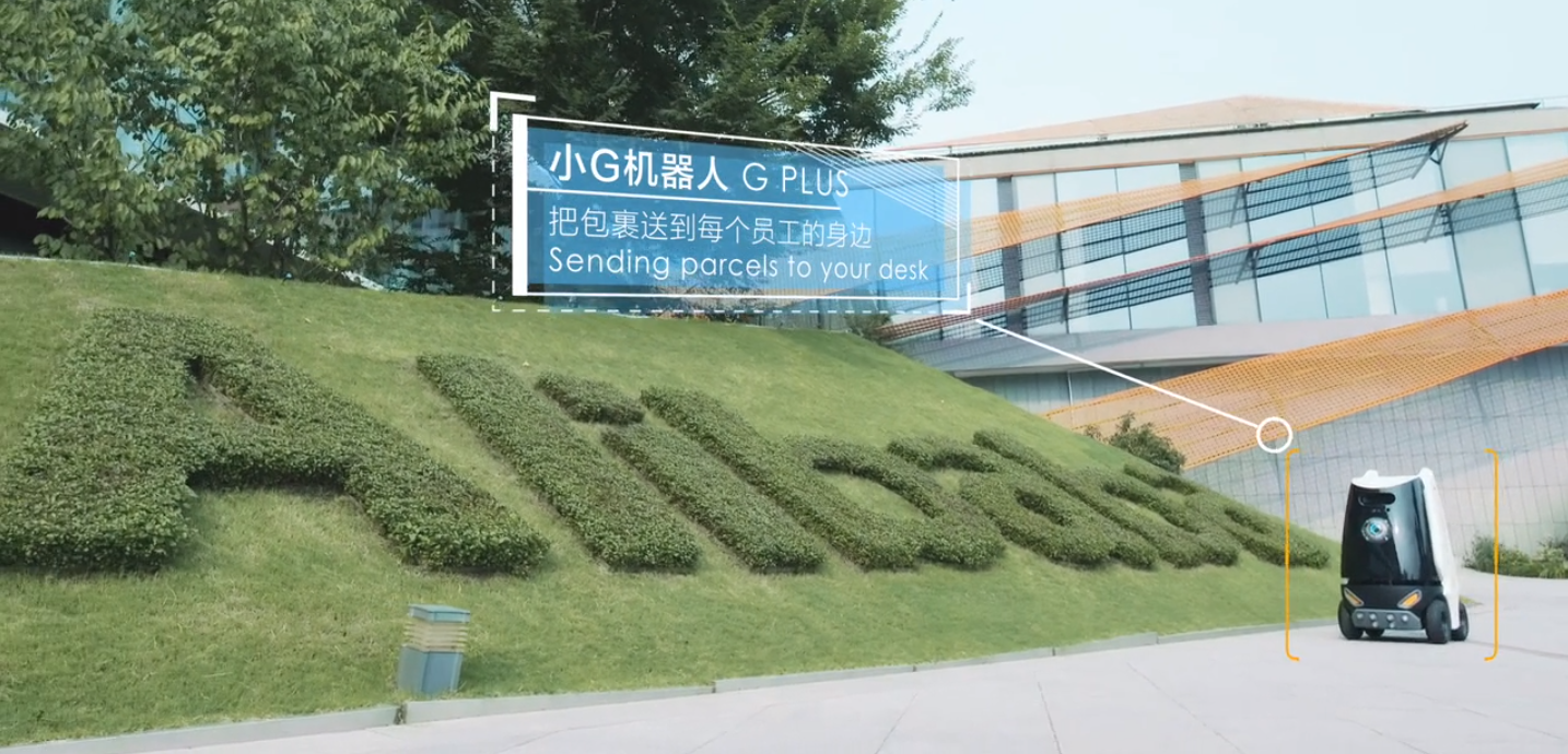 取快遞的時(shí)候,同樣可以通過(guò)刷臉,快速定位包裹位置,路上還會(huì)時(shí)不時(shí)碰到運(yùn)送包裹的機(jī)器人。
